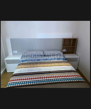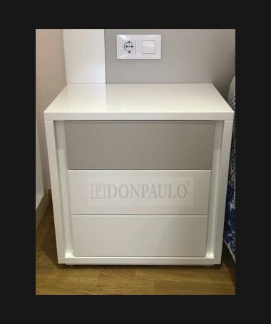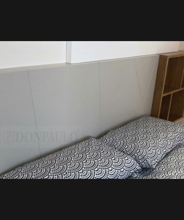 - Dormitorio modelo TDO0044, de estilo moderno hecho a medida, en madera en acabado blanco y gris, con tocador y armario a juego