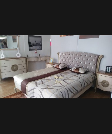 - Dormitorio modelo EDO0002, en madera de cerezo en acabado efecto anticuario, compuesto por: