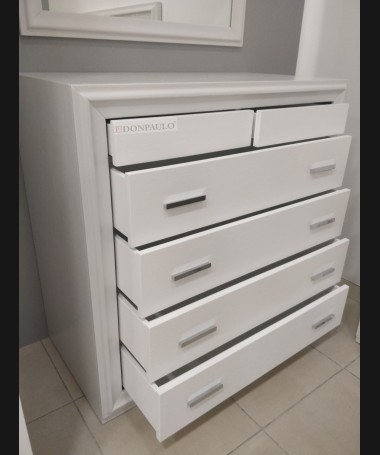 - Dormitorio modelo EDO0053, de estilo moderno hecho a medida, en madera, en acabado decapado blanco con los detalles decapados en gris claro, compuesto por:
