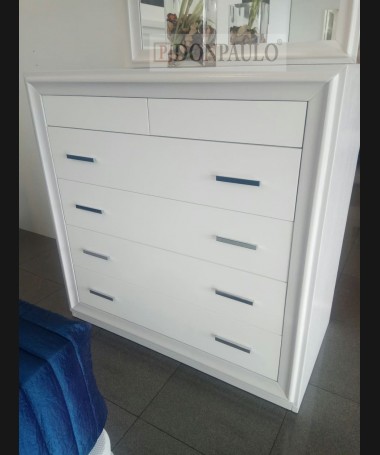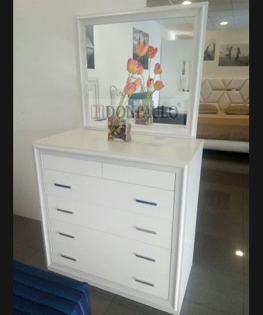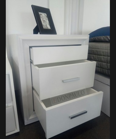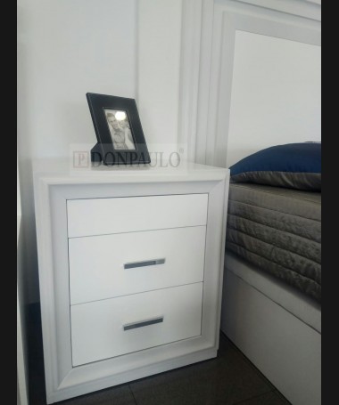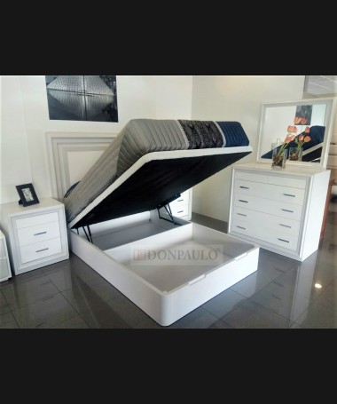 - Dormitorio modelo EDO0057, de estilo moderno hecho a medida, en madera, en acabado decapado blanco con los detalles decapados en gris claro, compuesto por: