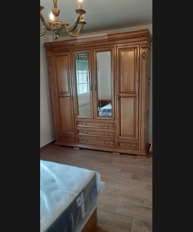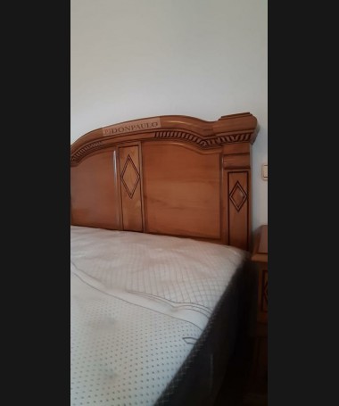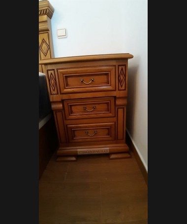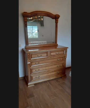 - Dormitorio modelo TDO0049, de estilo clásico hecho a medida, en madera de castaño 100% macizo tallado, en color alemán patinado, compuesto por cama, dos mesitas, cómoda con espejo y armario a juego