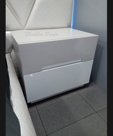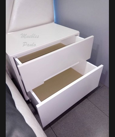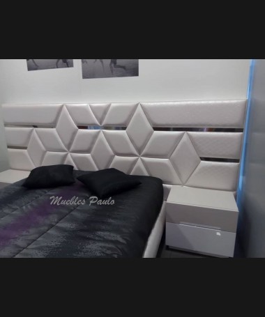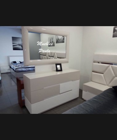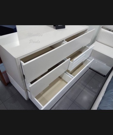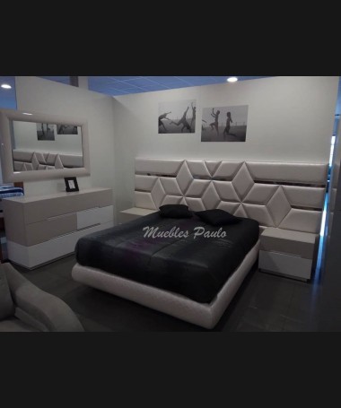 - Dormitorio modelo EDO0019, en DM Hidrófugo lacado en blanco con detalles color champagne, compuesto por: