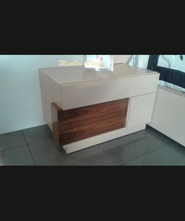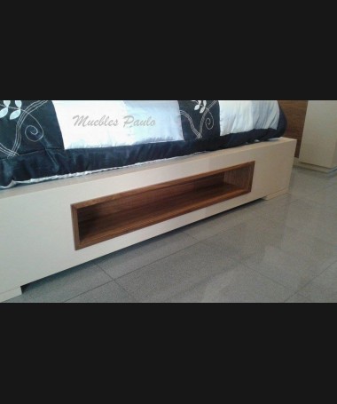 - Dormitorio modelo EDO0022, con luce led, en madera de castaño en acabado decapé color avellana, con detalles en nogal, compuesto por: