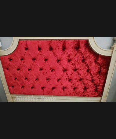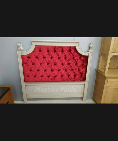 - Cabecero modelo EDO0039, en madera de cerezo en acabado efecto anticuario y tapizado en terciopelo granate con capitoné. De L168 x A157 cm