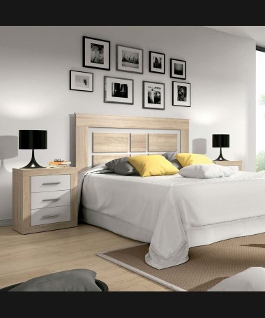 - Dormitorio modelo PDO0020, de estilo moderno hecho a medida, en madera y lacado, compuesto por cama y dos mesitas