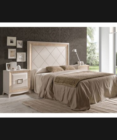 - Dormitorio modelo PDO0044, de estilo moderno hecho a medida, lacado en beige mate en varios tonos. Compuesto por cama de matrimonio y dos mesitas