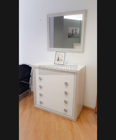 - Dormitorio modelo EDO0065, de estilo moderno hecho a medida, en madera en acabado decapado blanco, con detalles en decapé gris. Compuesto por: