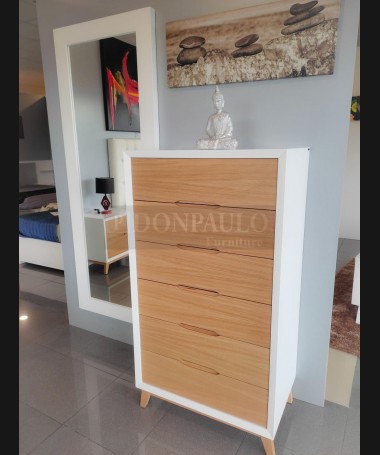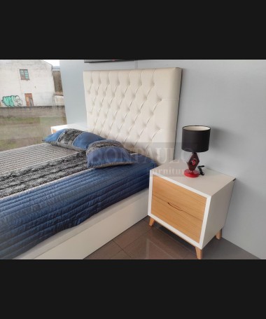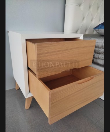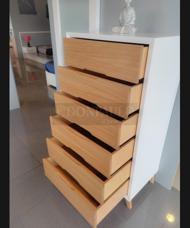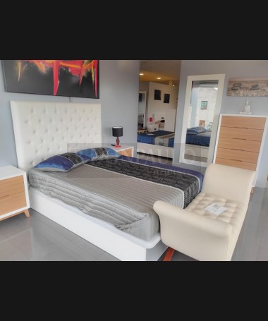 - Dormitorio modelo EDO0075, de estilo moderno hecho a medida, lacado en blanco mate y los frentes en roble mate, compuesto por: