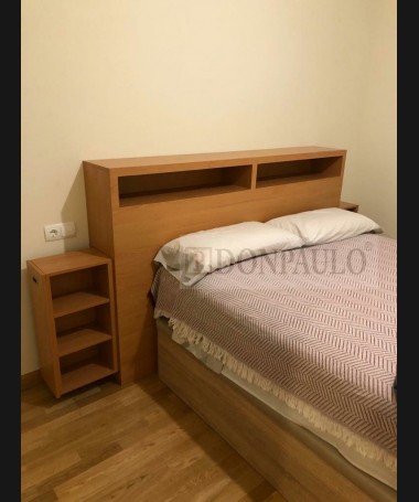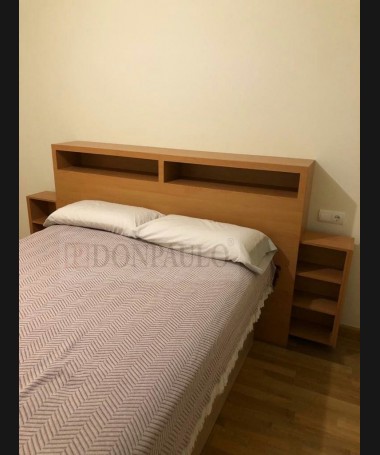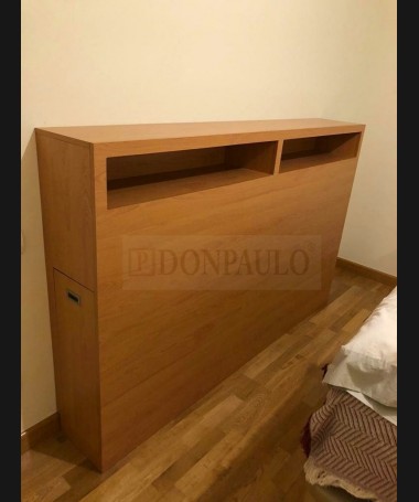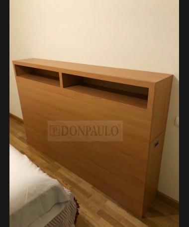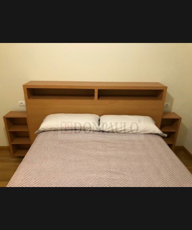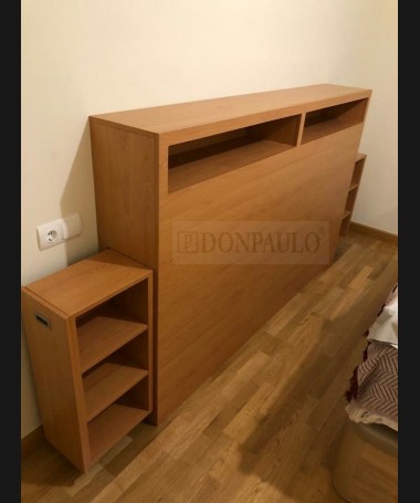 - Cabecero modelo TDO0074, de estilo moderno hecho a medida, en madera en color roble, con dos extraíbles en los laterales y estanterías