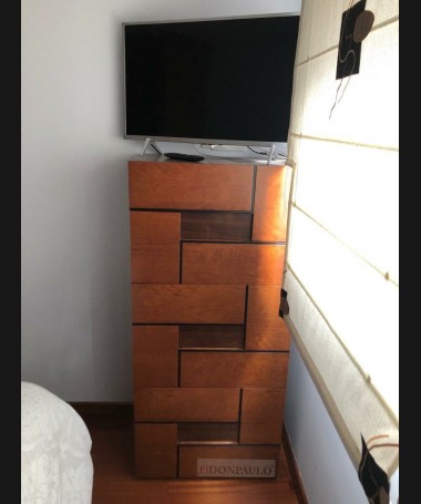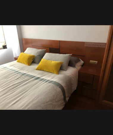 - Dormitorio modelo Filipa TDO0085, de estilo moderno hecho a medida, en cerezo con detalles color wengue, compuesto por: cama de matrimonio con cabecero corrido, dos mesitas y sinfonier