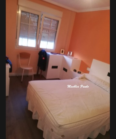- Dormitorio modelo TDO0009, con armario a juego, en madera de castaño en acabado decapado blanco, con el interior personalizado