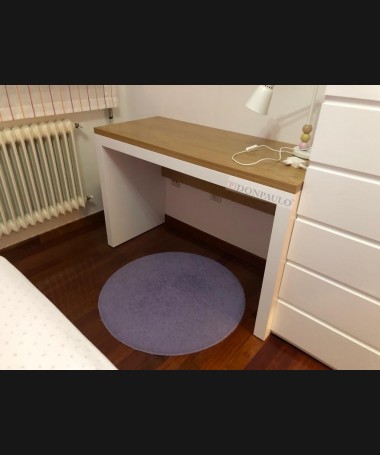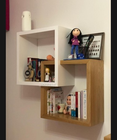 - Escritorio con librería modelo TESC0016, de estilo moderno hecho a medida, en madera en acabado decapado blanco y roble