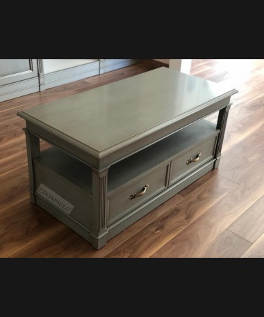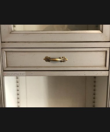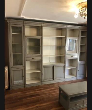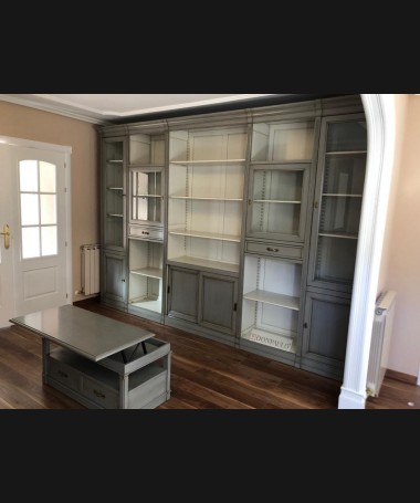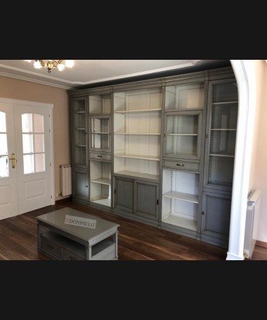 - Libreria modelo TESC0019, de estilo clásico hecho a medida, en madera de cerezo en acabado efecto envejecido, en gris y blanco roto