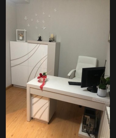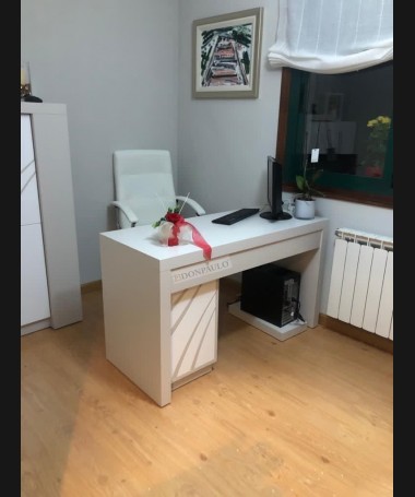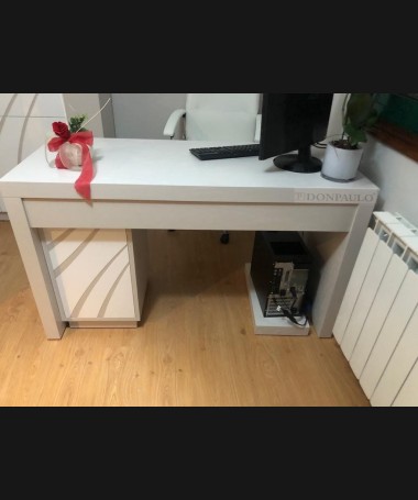 - Escritorio con librería modelo TESC0020, de estilo moderno hecho a medida, en blanco y gris color LM, Compuesto por mesa escritorio y librería