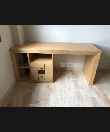 - Escritorio modelo TESC0028, de estilo moderno hecho a medida, en madera de castaño en color alemán, con detalles color tabaco, con una cajonera