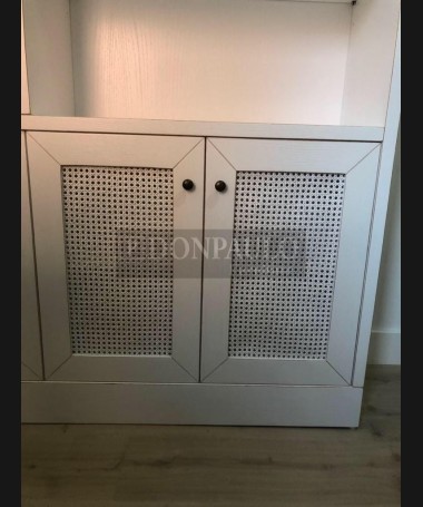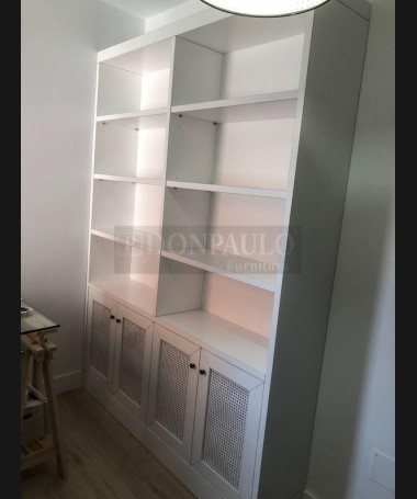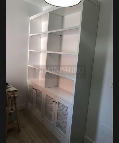 - Librería modelo TESC0039, de estilo clásico hecho a medida, en madera en acabado decapado gris