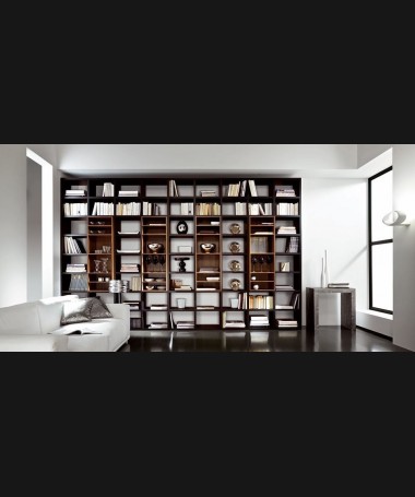 - Librería modelo PESC0030, de estilo moderno hecha a medida, en acabado negro combinado con color nogal