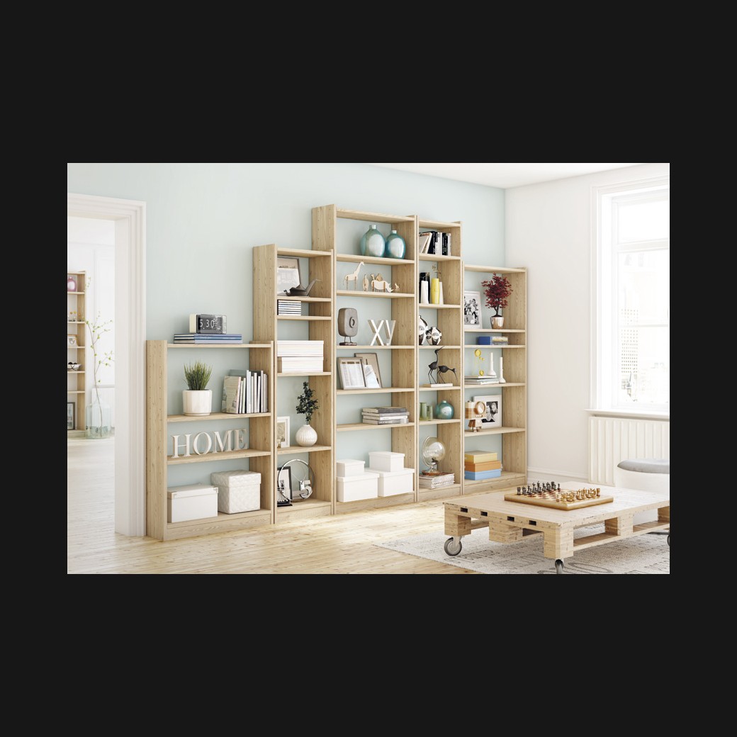 - Librería modelo PESC0034, de estilo moderno hecha a medida, en madera en acabado color natural