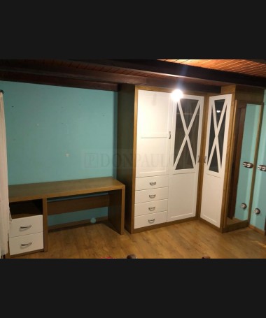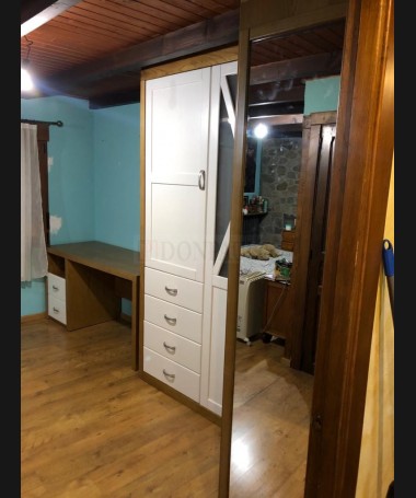 - Escritorio modelo TESC0014, en madera de castaño hecho a medida con los frentes de los cajones en decape blanco