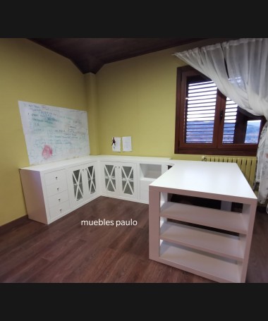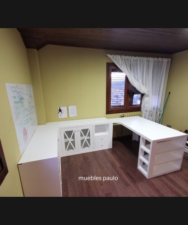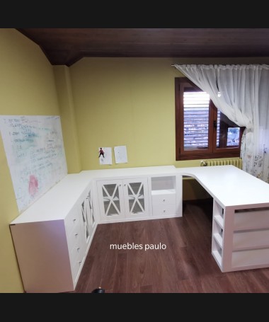 - Escritorio modelo TESC0015, en madera de castaño en acabado decapado blanco hecho a medida
