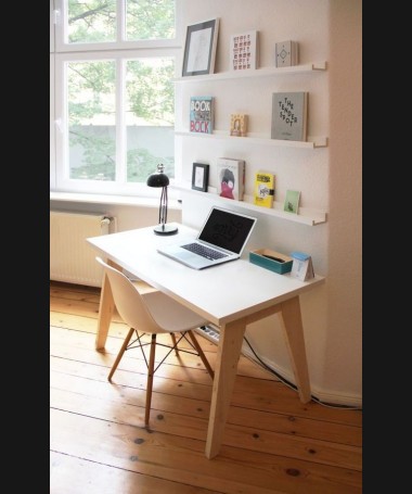 - Escritorio modelo PESC0014, de estilo moderno hecho a medida, de madera y lacado en blanco, compuesto por mesa de estudio, y estanterías