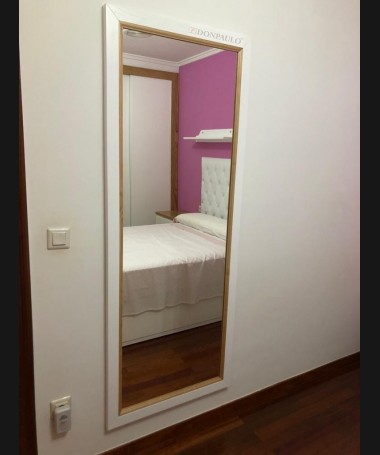 - Espejo vertical modelo TES0040, de estilo moderno hecho a medida, en decape blanco y color roble