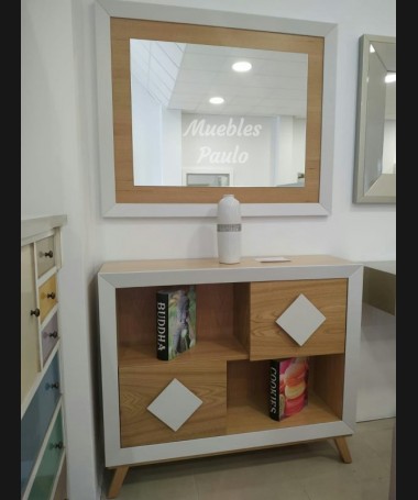 - Espejo modelo EES0008, de estilo moderno hecho a medida, en madera en color natural y decapado en gris. De L110 x A90 cm