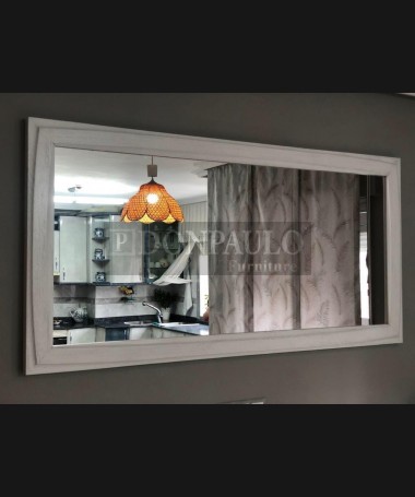 - Espejo modelo TES0048, de estilo moderno hecho a medida, en madera en acabado decapado blanco con detalles grises