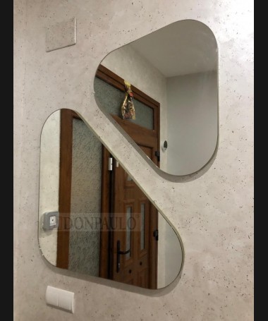 - Espejos modelo TES0015, espejos sin marco de formas asimetricas, y reloj de cristal y espejo de 100 cm de diámetro