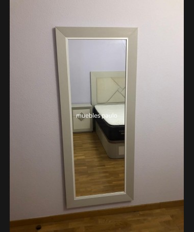 - Espejo modelo TES0017, de estilo moderno hecho a medida, en madera en acabado decapado beige y gris