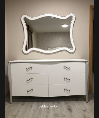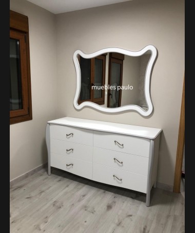- Espejo modelo TES0019, en acabado decapado blanco y gris, hecho a medida