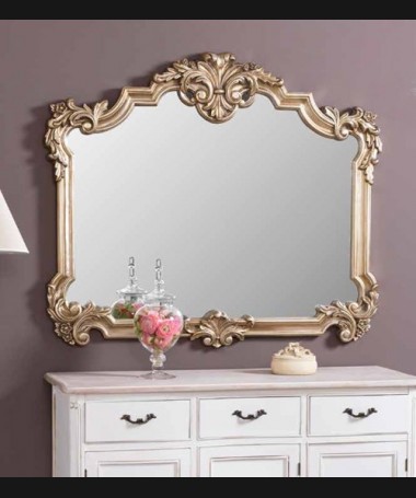 - Espejo modelo PES0029, de estilo clásico hecho a medida, con detalles tallados en acabado lacado dorado