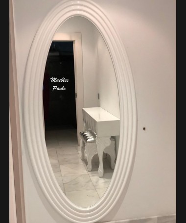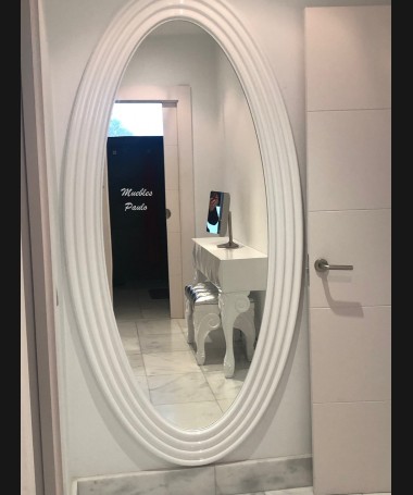 - Espejo ovalado modelo TES0033, en DM Hidrófugo en lacado blanco alto brillo hecho a medida