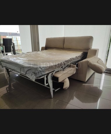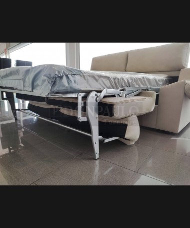 - Sofá cama modelo ESO0093, de estilo moderno hecho a medida, tapizado en tela de fácil limpieza color topo, con tipo de apertura italiana. De L215 x F95 cm cerrado y F205 cm abierto x A106 cm. Con el colchón viscolatex incluido de L140 x F185 x A13 cm