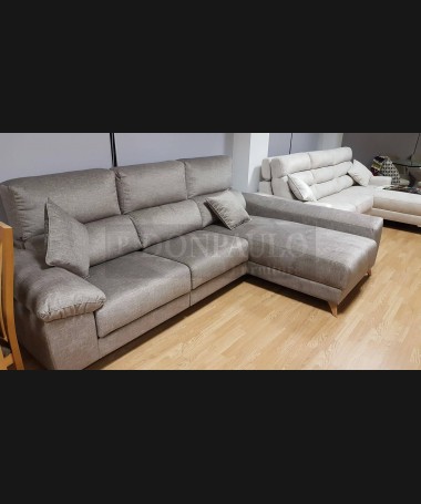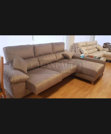 - Chaisselonge modelo ESO0099, de estilo moderno hecho a medida, con los asientos de viscolatex, con las dos plazas extraíbles, tapizado en tela de microfibras de fácil limpieza referencia Enma 12. De L280 x F100 x A105 cm con chaisselonge de 180 cm de fondo
