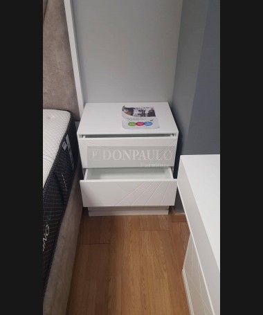 - Dormitorio modelo Fashion EDO0080, de estilo moderno hecho a medida, fabricado en DM hidrófugo lacado en blanco mate. Compuesto por: