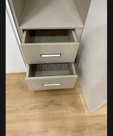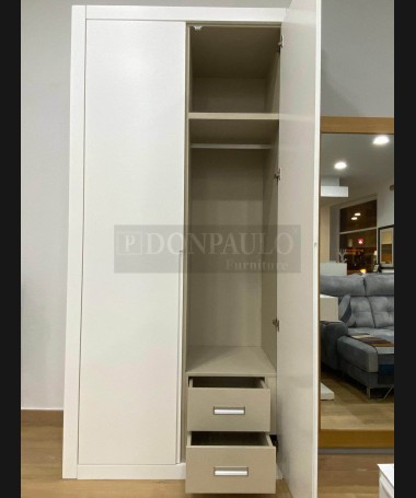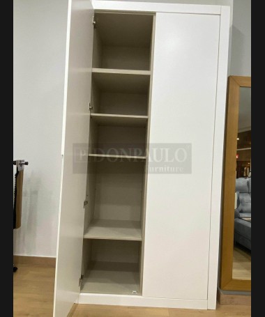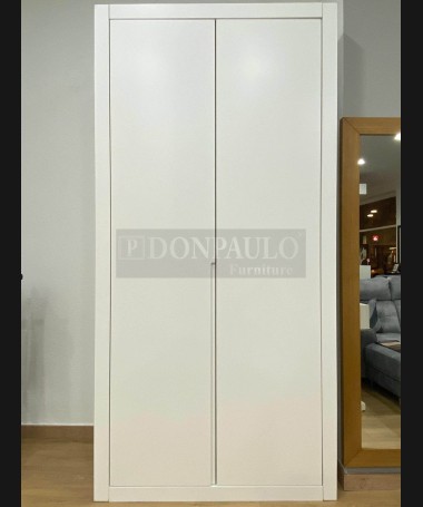 - Armario modelo EAR0015, de estilo moderno hecho a medida, en DM hidrófugo lacado en blanco mate con puertas de apertura, el interior de melamina textil. De L120,5 x F62 x A247 cm