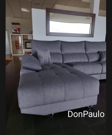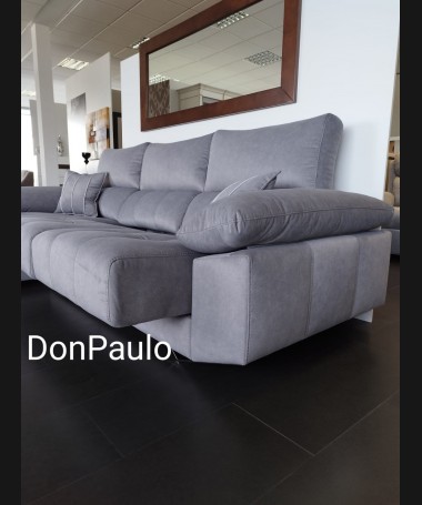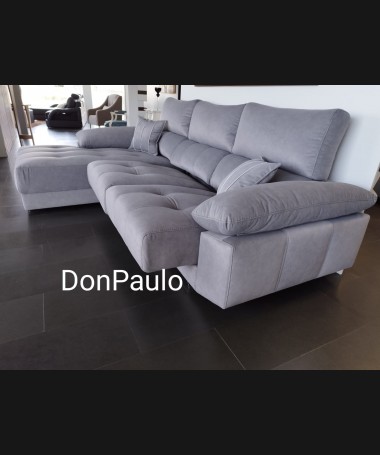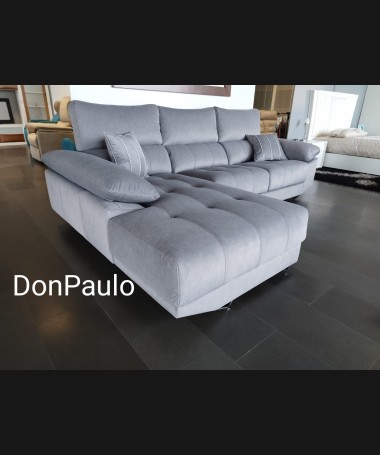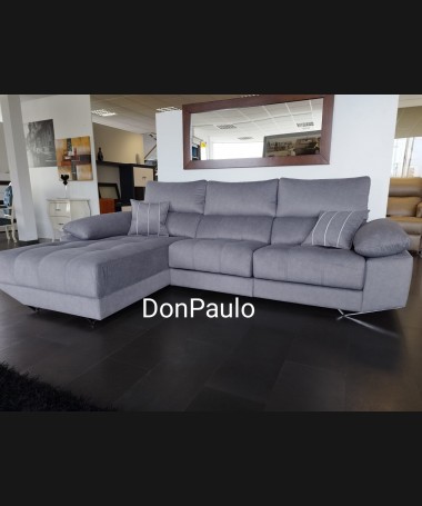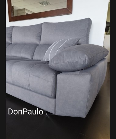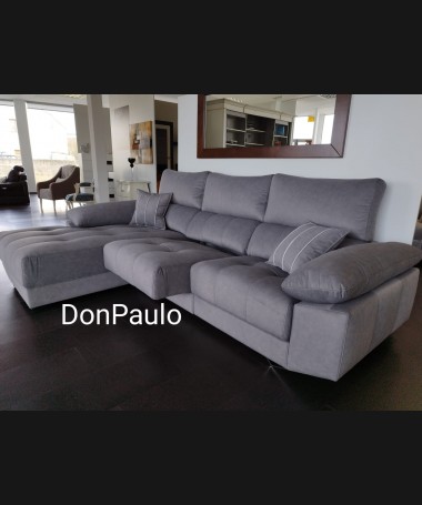 - Chaisselonge modelo Ofir ESO0102, de estilo moderno hecho a medida, tapizado en tela de microfibras de fácil limpieza gris, con los asientos de viscolatex extraíbles. De L290 x F185 x A100 cm