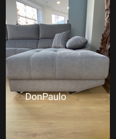 - Chaisselonge modelo Ofir ESO0103, de estilo moderno hecho a medida, con asientos de viscolatex extraíbles, tapizado en tela de microfibras de fácil limpieza gris. De L290 x F185 A100 cm