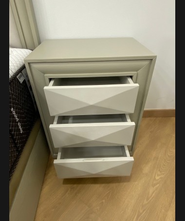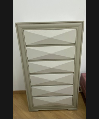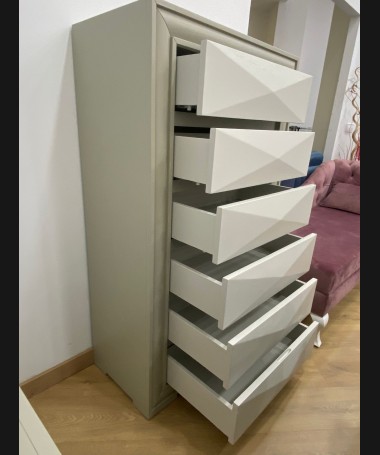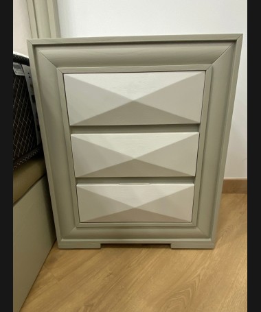 - Dormitorio modelo Lusango EDO0081, de estilo moderno hecho a medida, en madera en acabado decapado RAL7032 y RAL9002. Compuesto por: