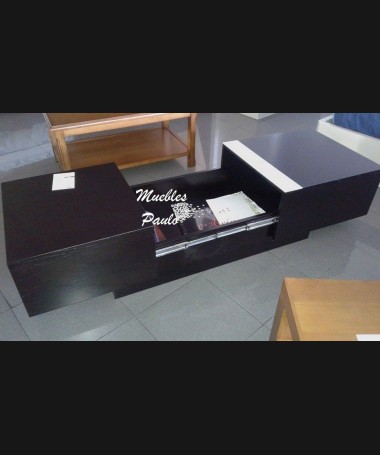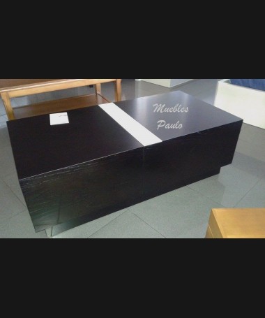 - Mesa de centro modelo EMC0016, en madera de castaño en decapado negro con un detalle de cristal blanco, se abre mediante guias para meter cosas dentro, de L120 cerrada y L202 cm abierta x F60 x A40,5 cm