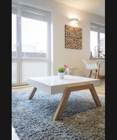- Mesa de centro modelo PMC0024, de estilo moderno hecha a medida, en madera de roble y lacada en blanco mate