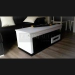 - Mesa de centro modelo TMC0048, de estilo moderno hecha a medida, en madera de castaño en acabado decapado blanco y negro