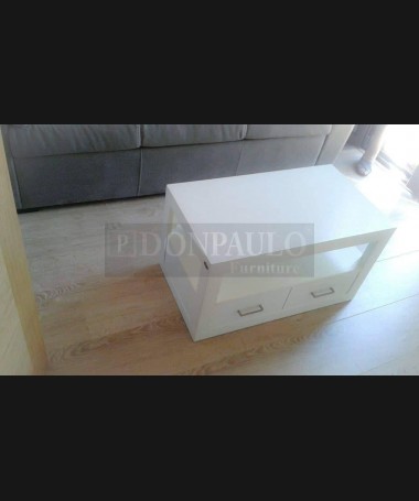 - Mesa de centro modelo TMC0050, de estilo moderno hecha a medida, fabricada en madera de castaño en acabado decapado blanco con dos cajones