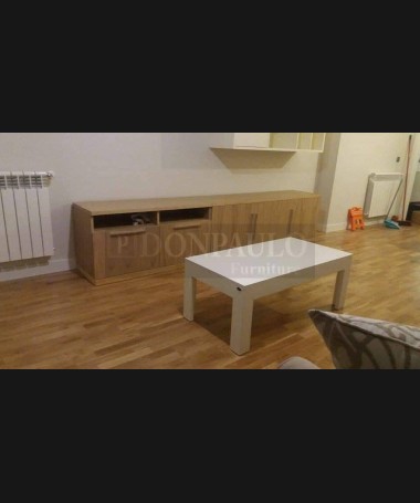 - Mesa de centro modelo TMC0054, de estilo moderno hecha a medida, en madera de roble decapada en blanco