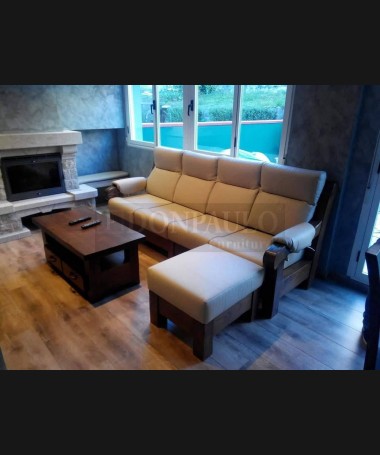 - Mesa de centro modelo TMC0067, de estilo rústico hecha a medida, fabricada en madera maciza de castaño en acabado efecto envejecido, con dos cajones