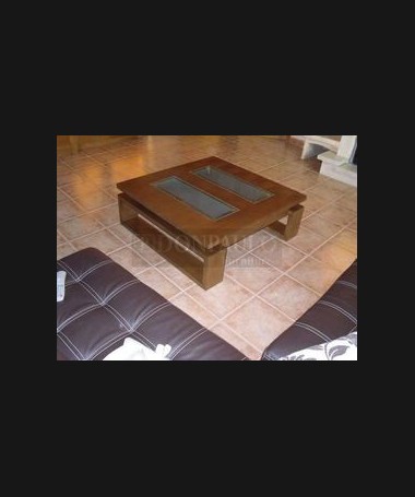 - Mesa de centro modelo TMC0074, de estilo moderno hecha a medida, en madera de castaño con detalles de cristal