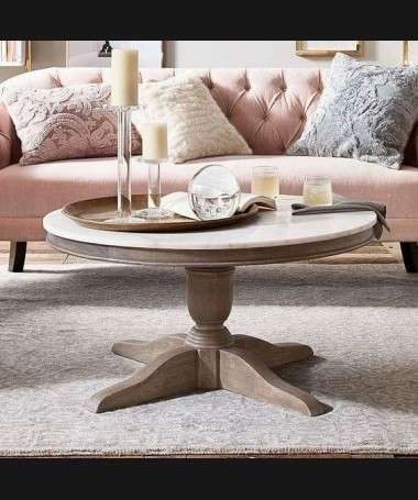 - Mesa de centro modelo PMC0017, de estilo clásico hecha a medida, en madera de forma redonda con la tapa de piedra