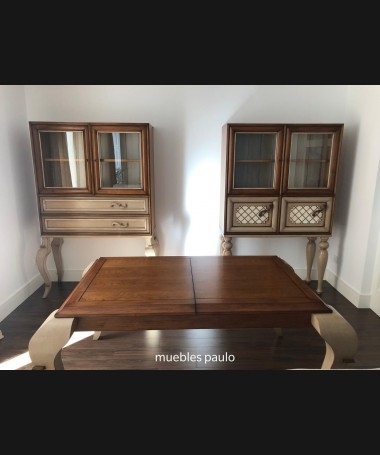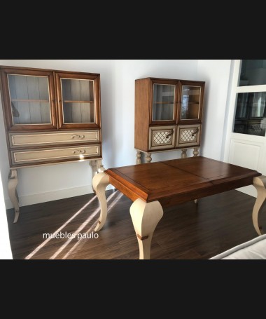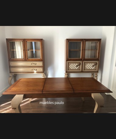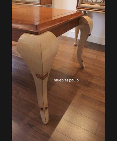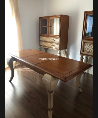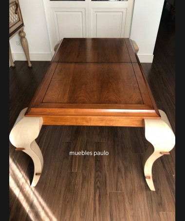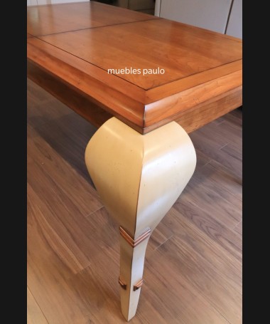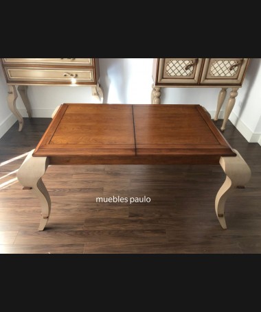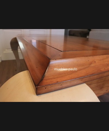 - Mesa de comedor TM0001, en madera de cerezo hecha a medida, en acabado efecto anticuario, con extensión en el centro