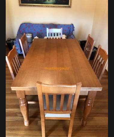 - Mesa de comedor modelo TM0006, de estilo rústico, hecho a medida, en madera de castaño